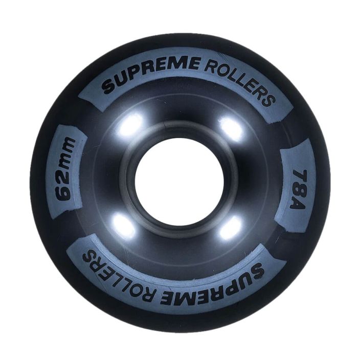 Beskrivelse / Supreme Rollers Side By Side Hjul LED-lys 62mm/78A Sort 4 Pak